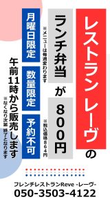 持ち帰り用ランチ弁当をはじめさせていただきます。